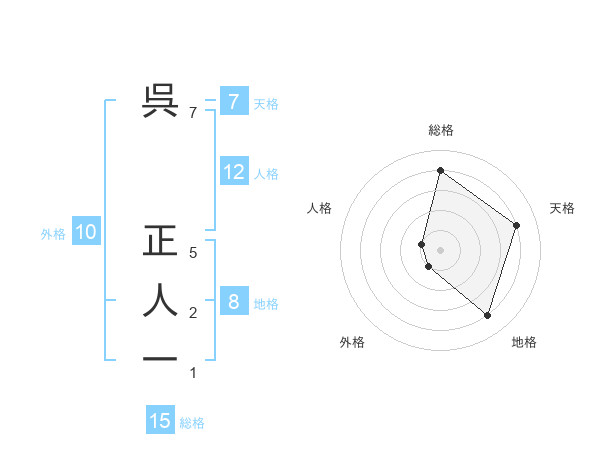 呉 正人一さんの地格は8画の4点!