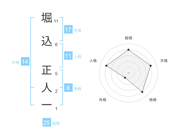 堀込 正人一さんの天格は17画の4点!