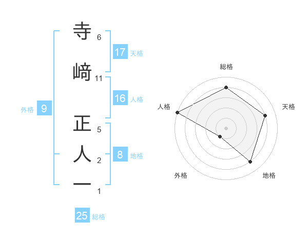 寺﨑 正人一さんの総格は25画の4点!