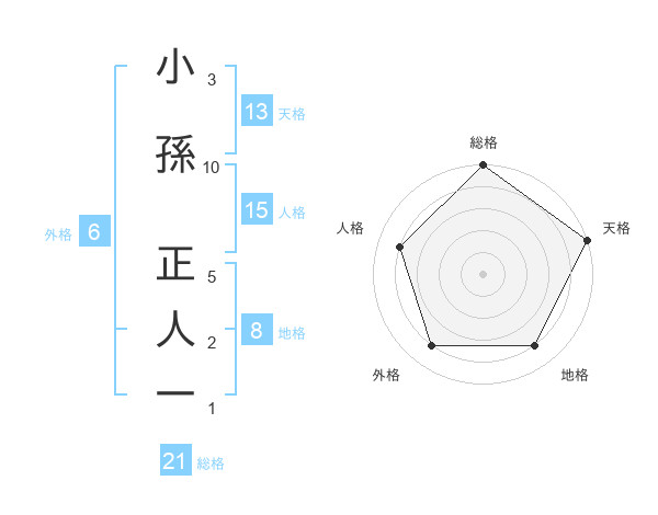 小孫 正人一さんを姓名の画数から五運を鑑定