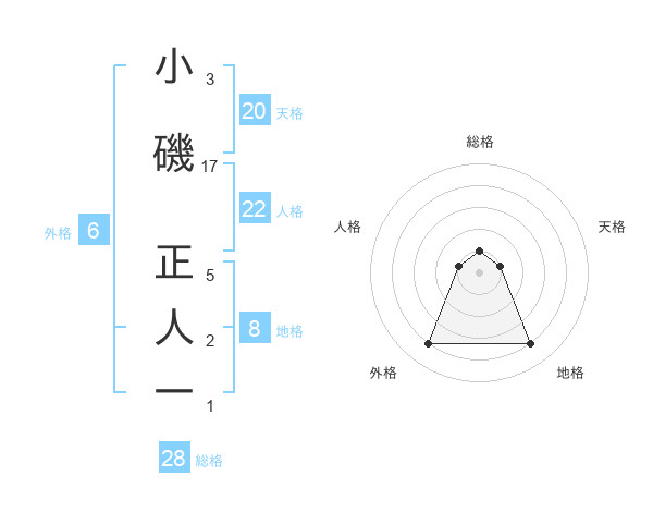 小磯 正人一さんを姓名の画数から五運を鑑定