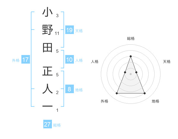 小野田 正人一さんの総格は27画の3点!