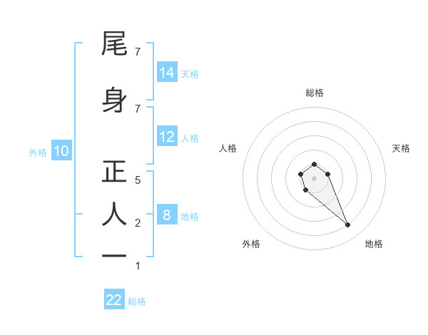 尾身 正人一さんの総格は22画の1点!