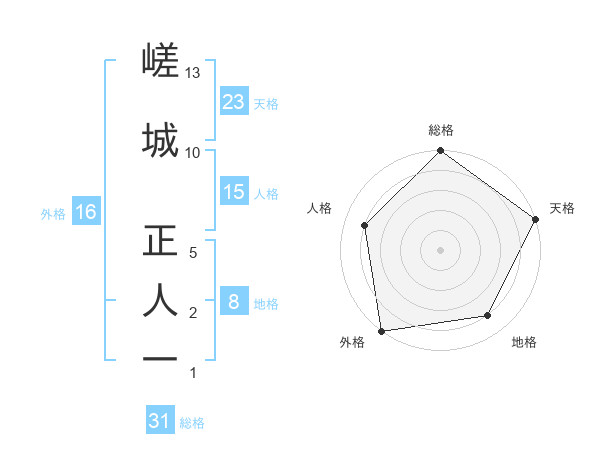 嵯城 正人一さんを姓名の画数から五運を鑑定