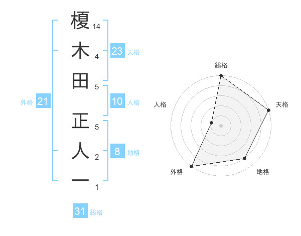 榎木田 正人一さんの総格は31画の5点!