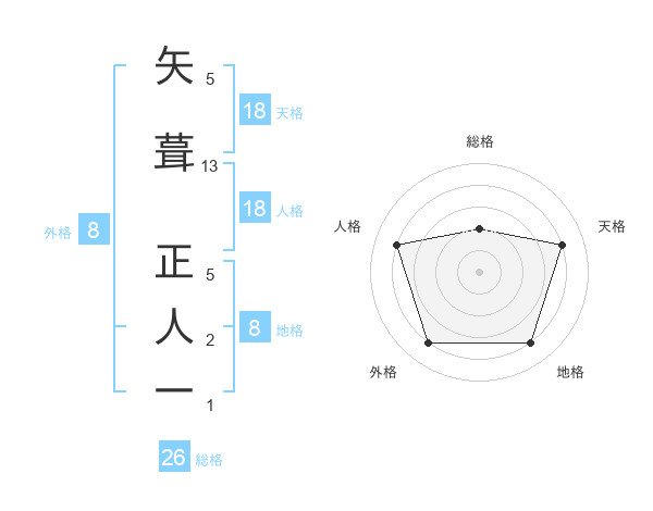 矢葺 正人一さんを姓名の画数から五運を鑑定