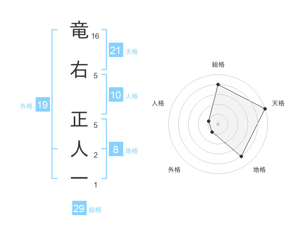 竜右 正人一さんを姓名の画数から五運を鑑定