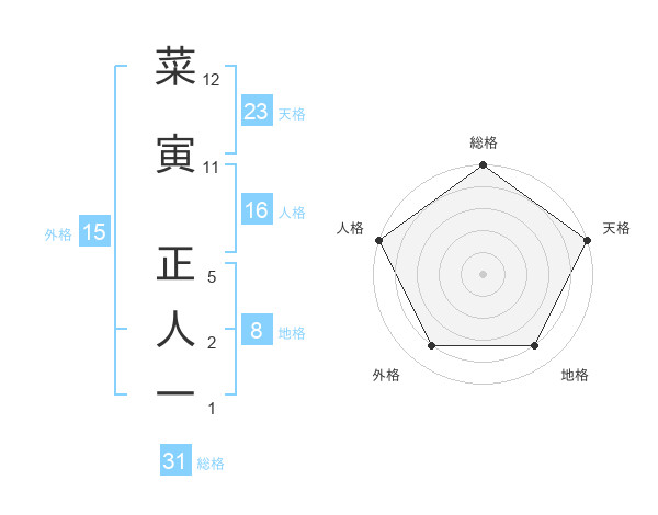 菜寅 正人一さんの総格は31画の5点!