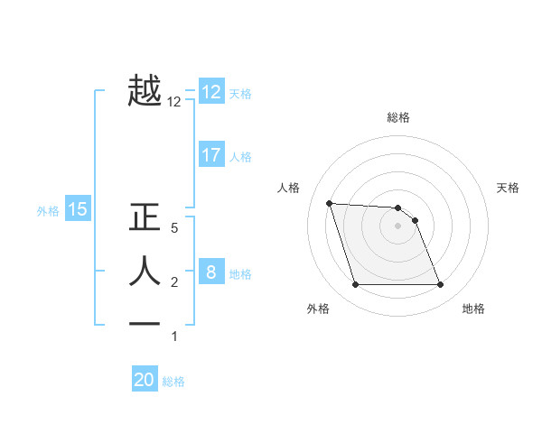 越 正人一さんの地格は8画の4点!