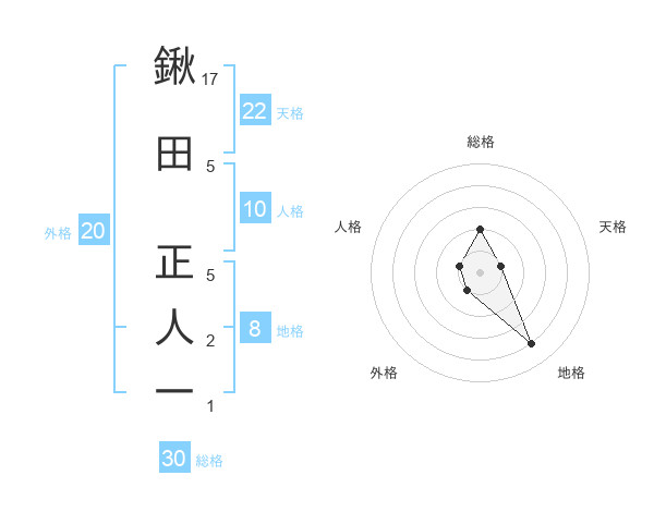 鍬田 正人一さんを姓名の画数から五運を鑑定