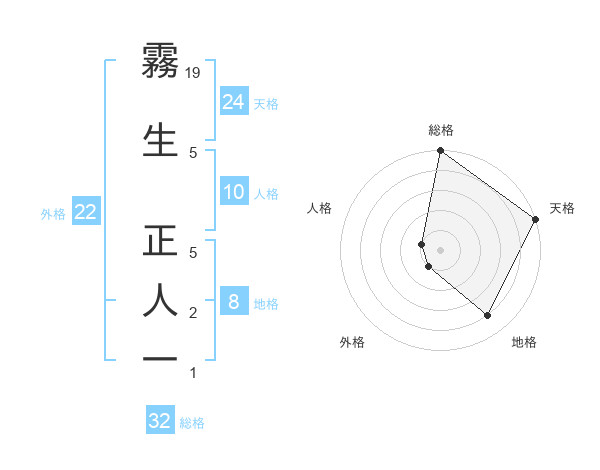 霧生 正人一さんを姓名の画数から五運を鑑定
