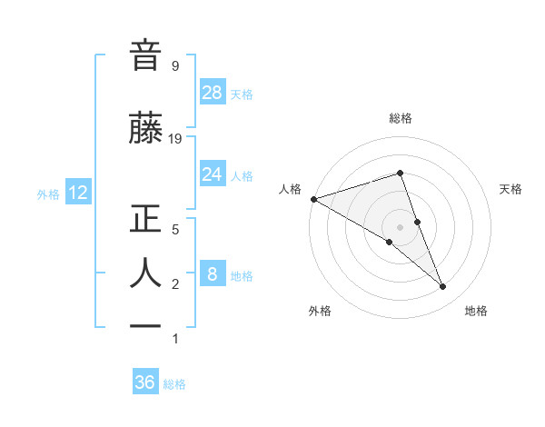 音藤 正人一さんの地格は8画の4点!