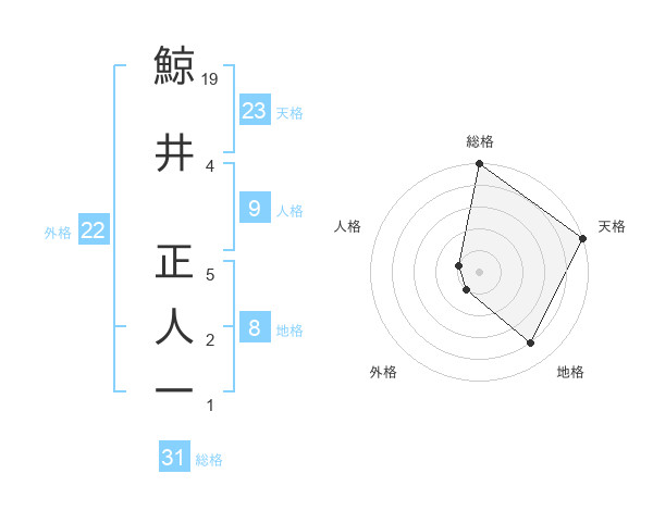 鯨井 正人一さんの地格は8画の4点!