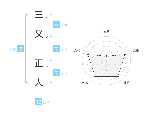 三又 正人さんの天格は5画の4点!