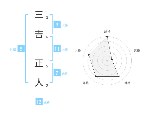 三吉 正人さんの総格は16画の5点!