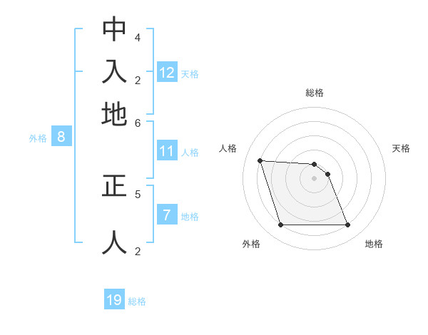 中入地 正人さんの地格は7画の4点!