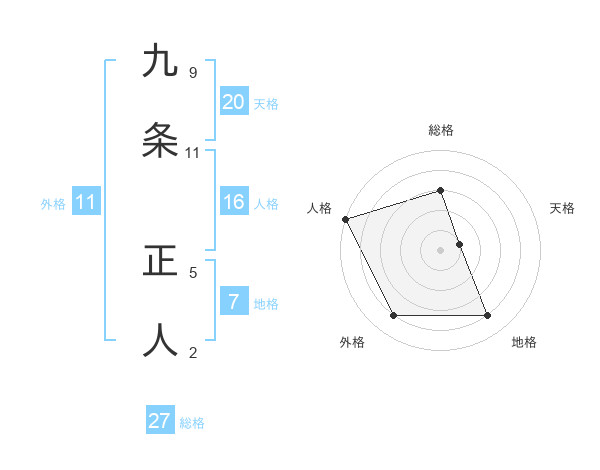 九条 正人さんの天格は20画の1点!