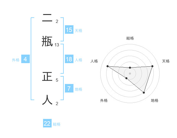 二瓶 正人さんの総格は22画の1点!