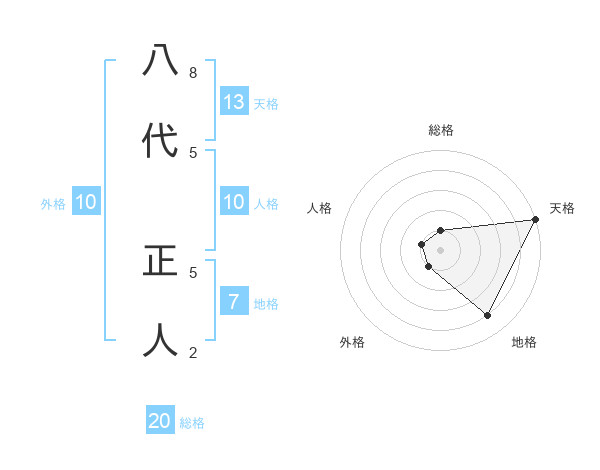 八代 正人さんの天格は13画の5点!