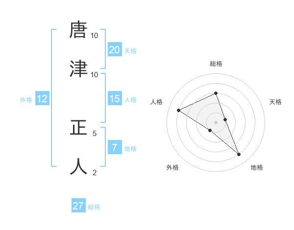 唐津 正人さんの外格は12画の1点!