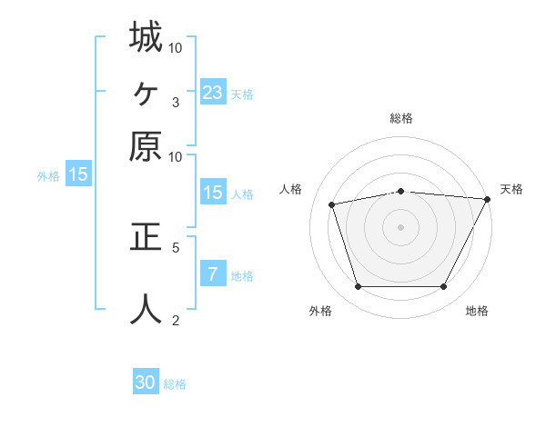 城ヶ原 正人さんを姓名の画数から五運を鑑定
