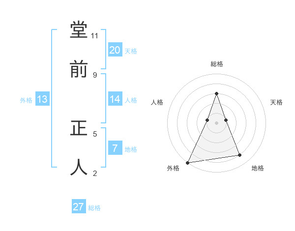 堂前 正人さんの総格は27画の3点!