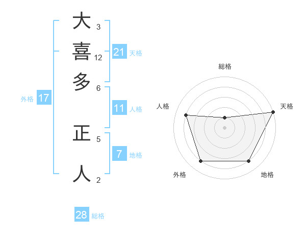 大喜多 正人さんの天格は21画の5点!