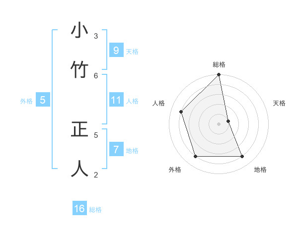 小竹 正人さんの総格は16画の5点!