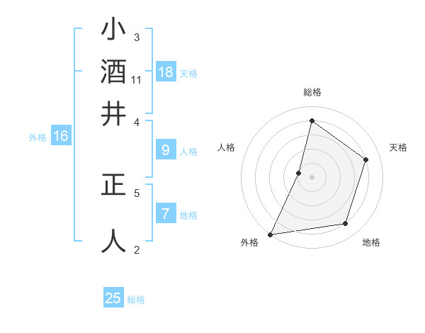小酒井 正人さんの総格は25画の4点!