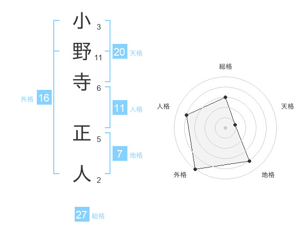 小野寺 正人さんの外格は16画の5点!