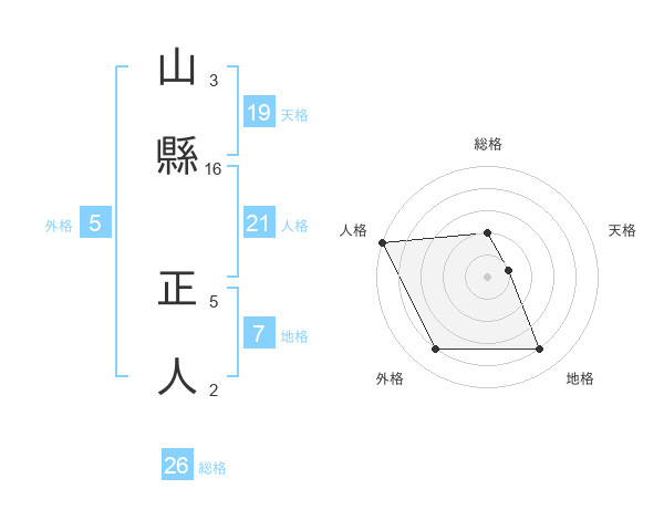 山縣 正人さんの総格は26画の2点!