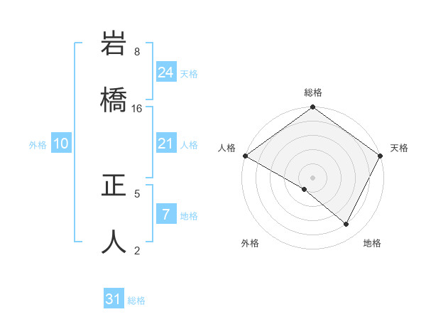 岩橋 正人さんの総格は31画の5点!