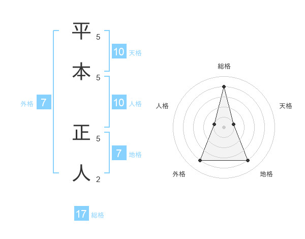 平本 正人さんの総格は17画の4点!