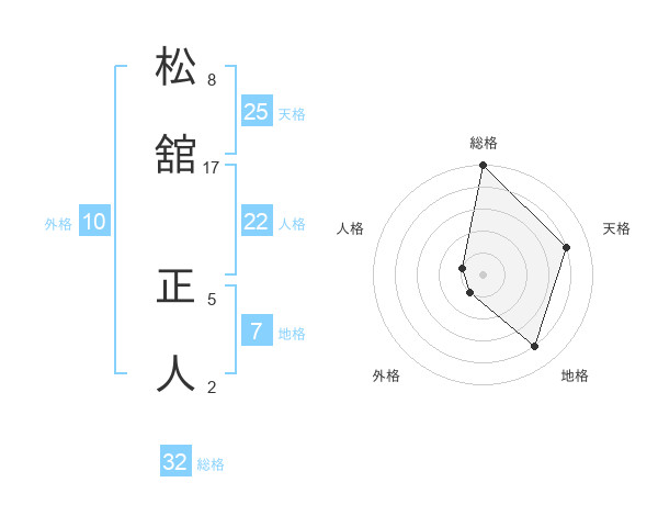 松舘 正人さんの総格は32画の5点!