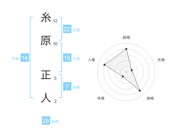 糸原 正人さんの総格は29画の4点!