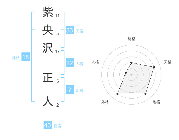紫央沢 正人さんの天格は33画の4点!