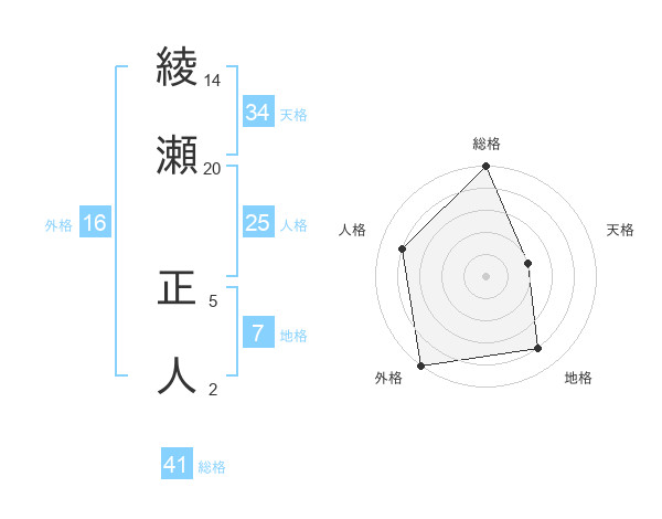 綾瀬 正人さんを姓名の画数から五運を鑑定
