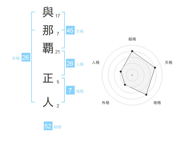 與那覇 正人さんを姓名の画数から五運を鑑定