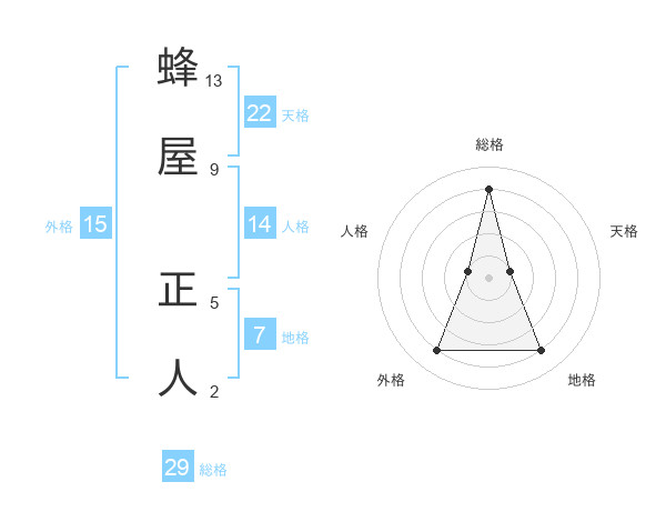 蜂屋 正人さんの総格は29画の4点!