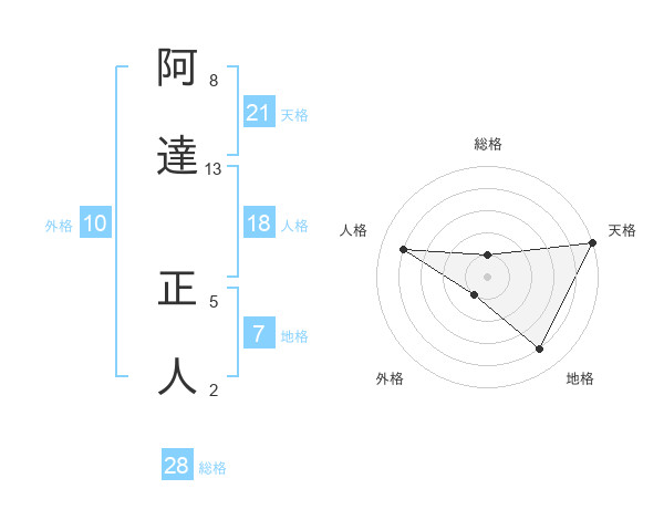 阿達 正人さんの天格は21画の5点!