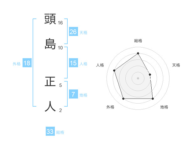 頭島 正人さんの総格は33画の4点!