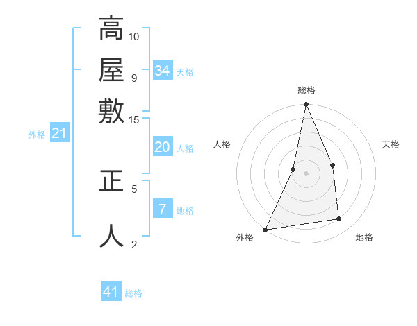 高屋敷 正人さんの総格は41画の5点!