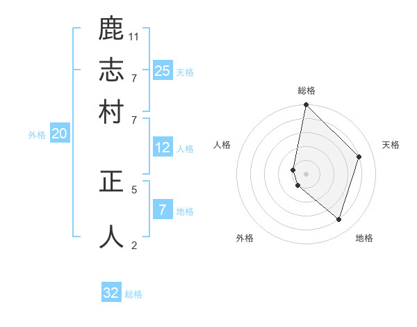 鹿志村 正人さんの天格は25画の4点!
