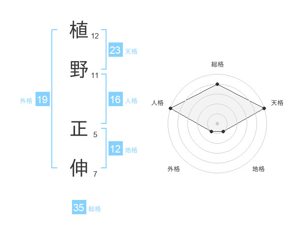 植野 正伸さんの総格は35画の4点!