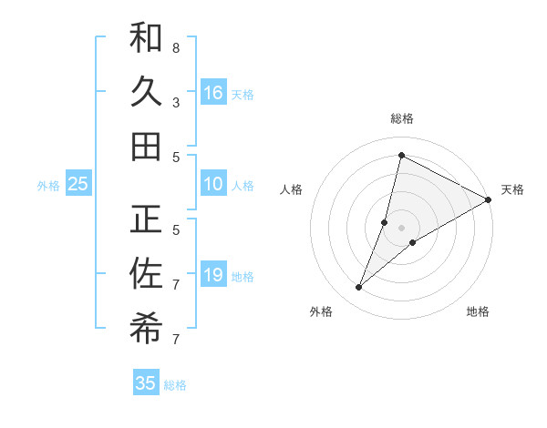 和久田 正佐希さんを姓名の画数から五運を鑑定