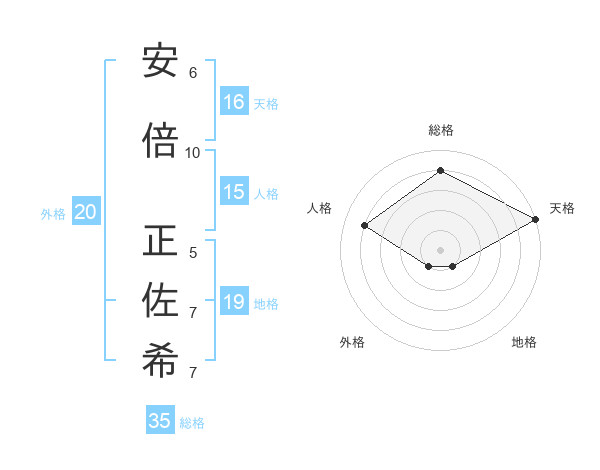安倍 正佐希さんを姓名の画数から五運を鑑定