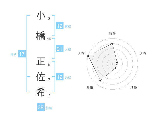 小橋 正佐希さんを姓名の画数から五運を鑑定