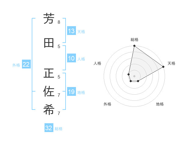 芳田 正佐希さんを姓名の画数から五運を鑑定