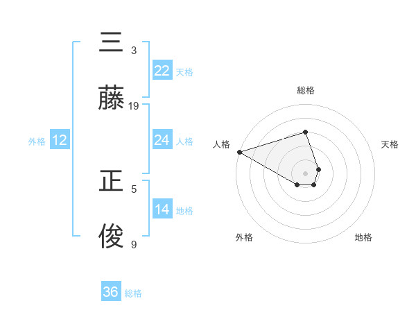 三藤 正俊さんを姓名の画数から五運を鑑定