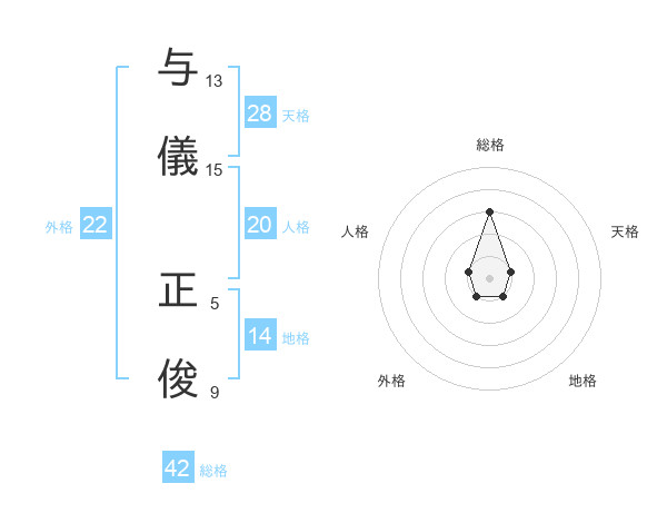 与儀 正俊さんを姓名の画数から五運を鑑定